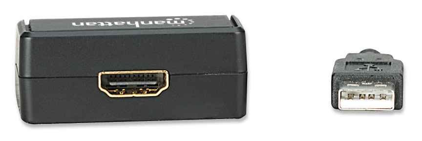 - Convertit facilement la vidéo USB et l’audio stéréo en un signal HDMI